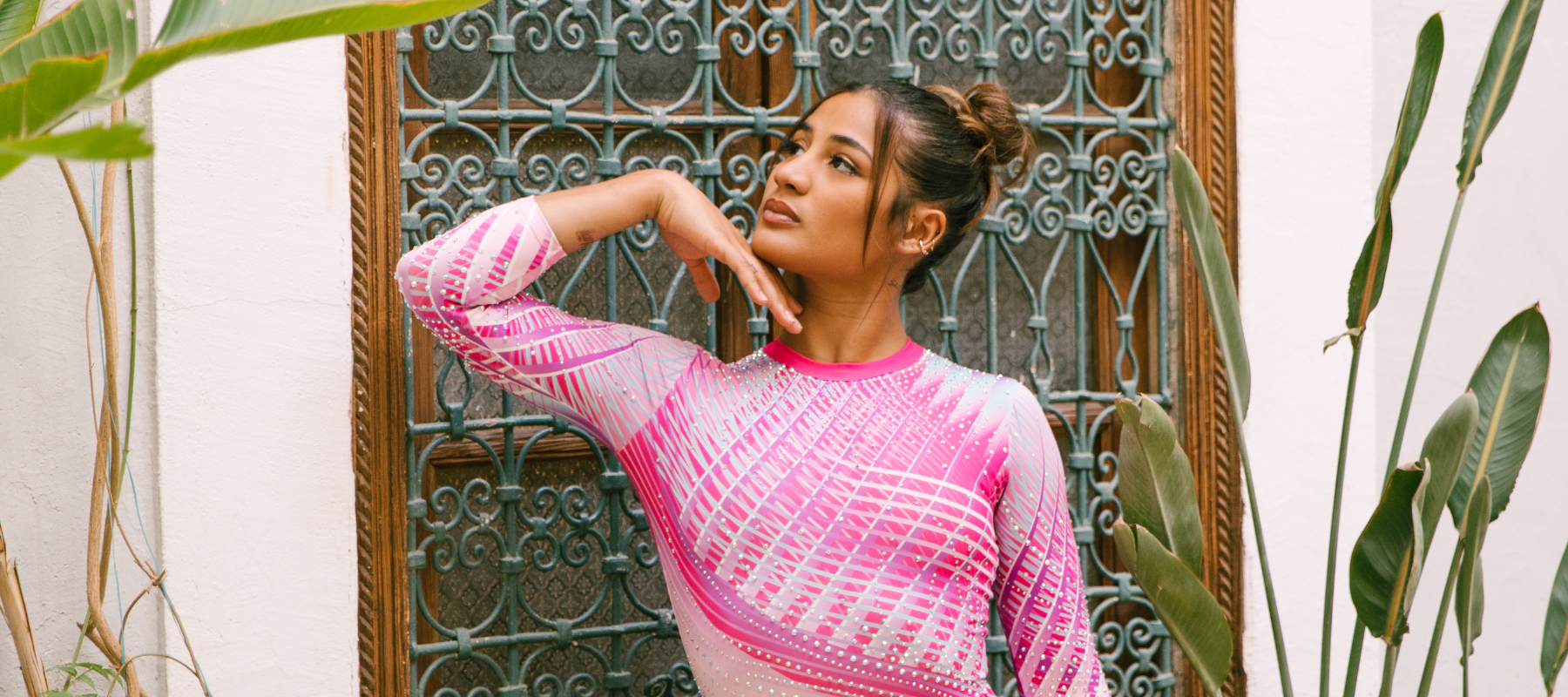 Eclipse Long Sleeve gymnastics leotard is the performance-ready version of our Eclipse design, perfect for when the lights go up and the stakes are high. With a striking hot pink lycra body and a sublimated lycra bodice in mint, baby pink, grape, and hot pink, this leotard was built for the competition floor. The bold swirl of colours is enhanced by a stunning mix of standard and AB crystals, cascading across the body and sleeves in a sparkling display that moves with you. Designed with a high neckline, hot pink binding, and a clasp closure at the back, Eclipse LS features a dramatic circular cutout that adds elegance and breathability. FIG-compliant and full of presence, this is your statement piece for standout routines.