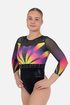 Radiate confidence in Charisma, a showstopping 3/4 sleeve gymnastics leotard. Layers of beautiful details make this a true standout piece. Featuring a black Mystique body and a bold ombre of orange, yellow, cherry, and purple on the bodice and sleeves, adorned with sparkling stones, patterned stone belt, and thin crisscross straps, Charisma is a must-have design for those who want an elevated look. Read More