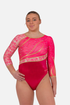 Step into the spotlight with this exquisite fire-inspired leotard, designed to captivate with a mix of pink and red hues. Featuring 3/4 sleeves and a classic round neckline, this leotard blends luxurious lace with vibrant sublimated lycra, creating a dynamic look that embodies the essence of fire. The rich interplay of colors and textures enhances each movement with elegance and intensity, making it perfect for gymnasts who love to perform with flair. A stunning fusion of artistry and comfort, this leotard is crafted to leave a lasting impression. Read More