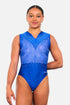 The Couture leotard, designed for elite French gymnast Celia Serber, is a true masterpiece that radiates elegance, sophistication, and unparalleled craftsmanship. Created specifically for the French National Championships, this stunning leotard is a perfect blend of timeless beauty and modern design. Crafted with a luxurios royal blue lycra body and shoulders, this leotard features a royal blue mesh bodice that creates a graceful sweetheart silhouette. The design is enhanced by a modern collar-style neckline at the front, which exudes a sense of refined class and elevates the overall look, while the high neck at the back, finished with a discreet invisible zip, contributes to a sleek, polished appearance. Adorned with standard and AB stones in a mesmerising swirling pattern, the Couture leotard is the epitome of delicate beauty and elite performance.