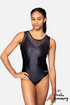 Designed by Ondine Achampong, the Diamonds leotard is a sleek, black wet-look lycra masterpiece. It features a round neck with a V-back and thin straps that overlay to the waist. Sparkling stones at the neckline create the illusion of a necklace, leading to an asymmetric design down the bodice for a chic and modern touch.